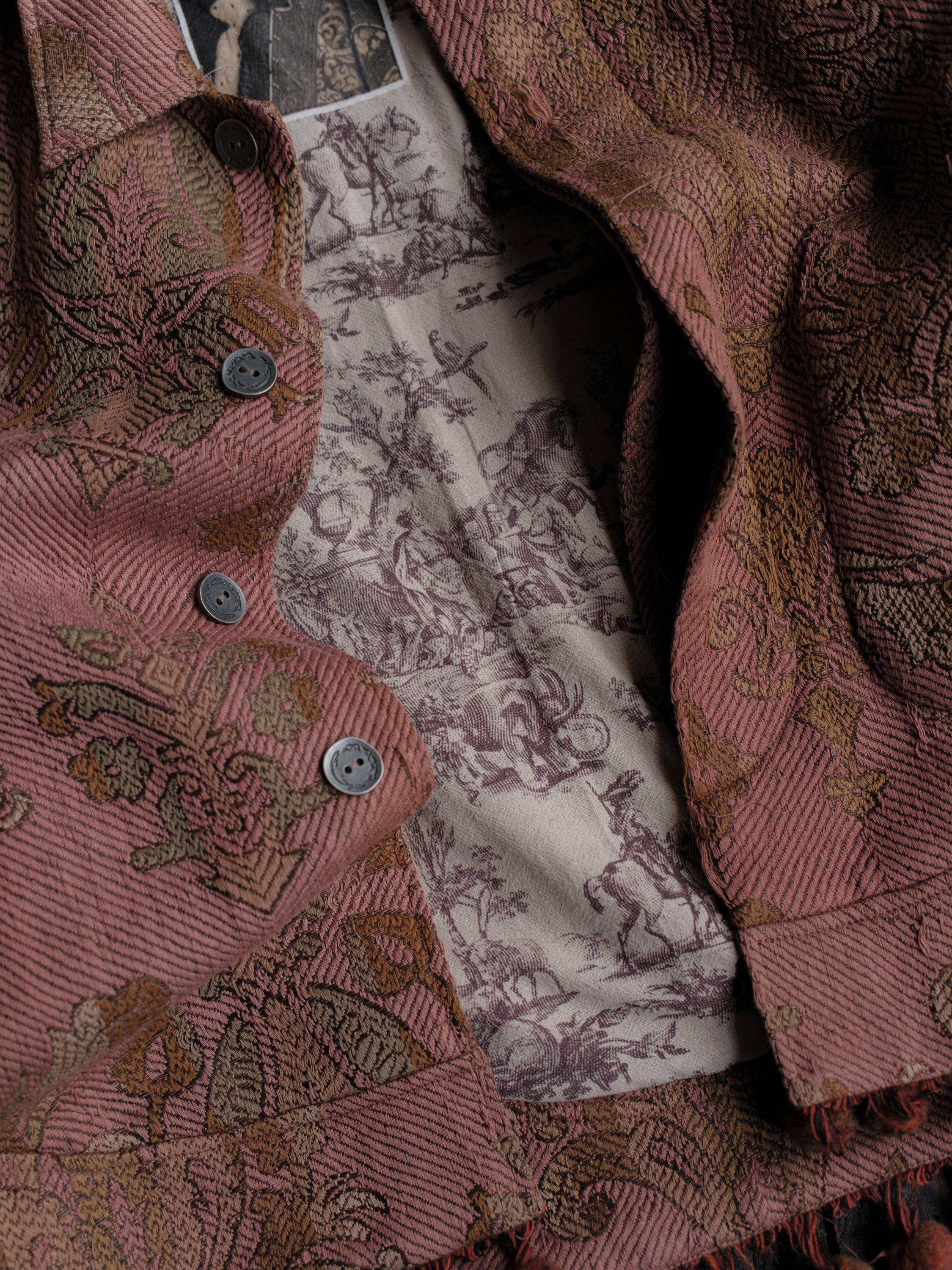 We preserved the original distressing on the fabric and relocated the fringe to the hem, adding extra depth and texture.