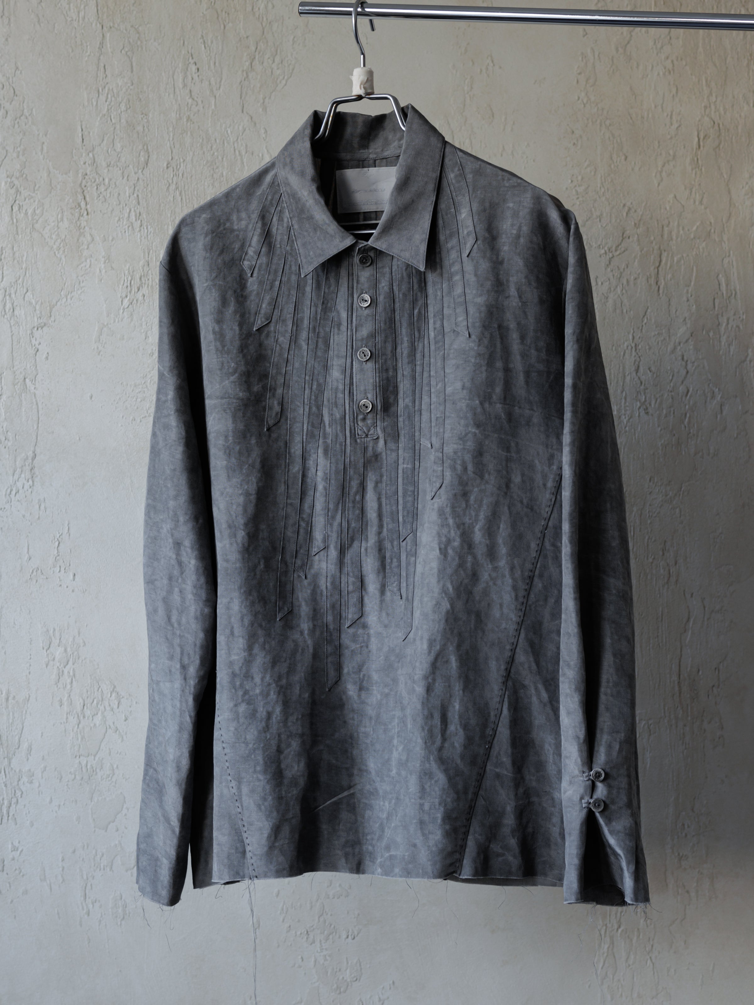 Made from fabric produced in a Japanese workshop, hand dyed before being crafted into shirts, with each piece showcasing a unique texture.