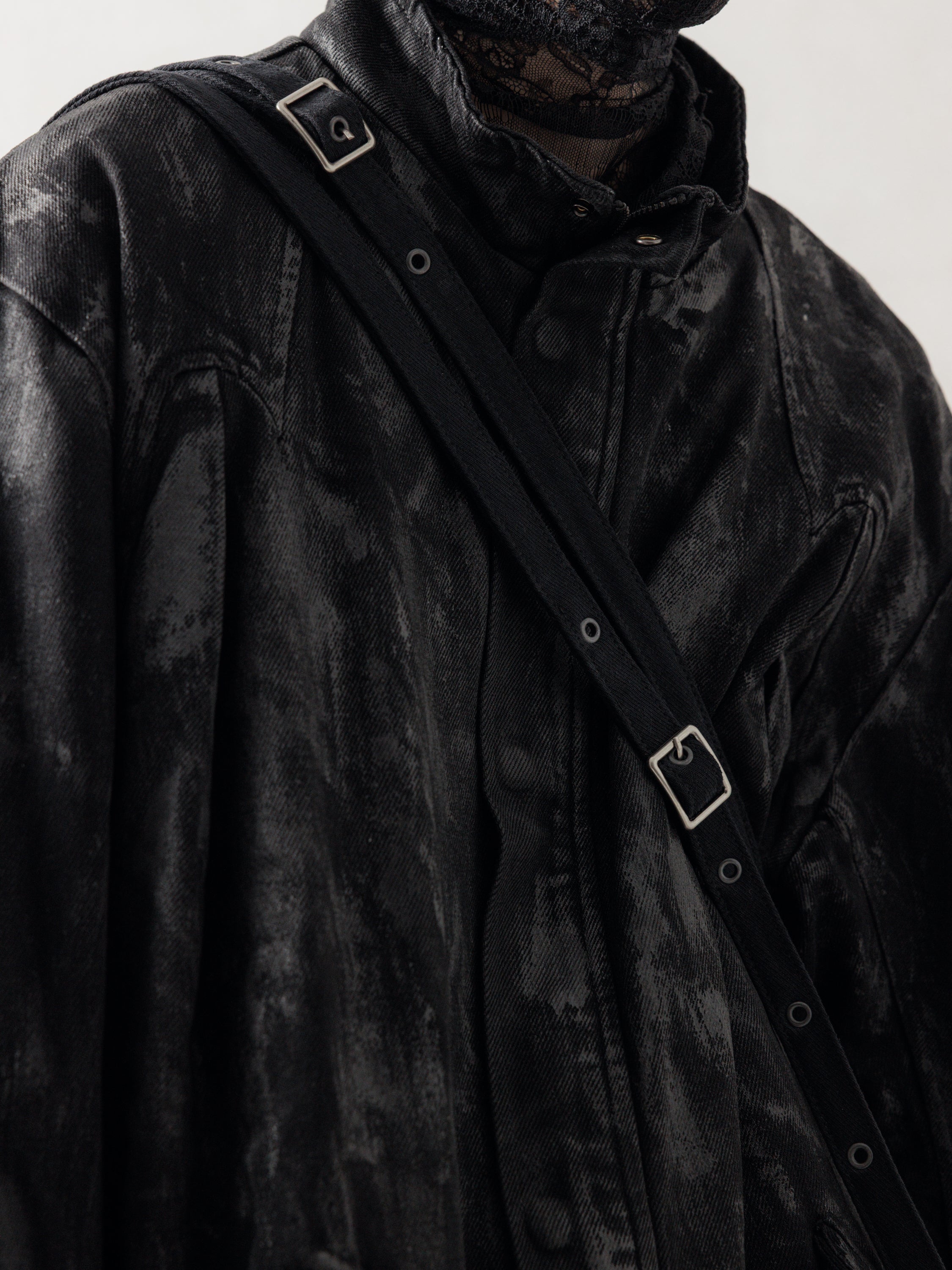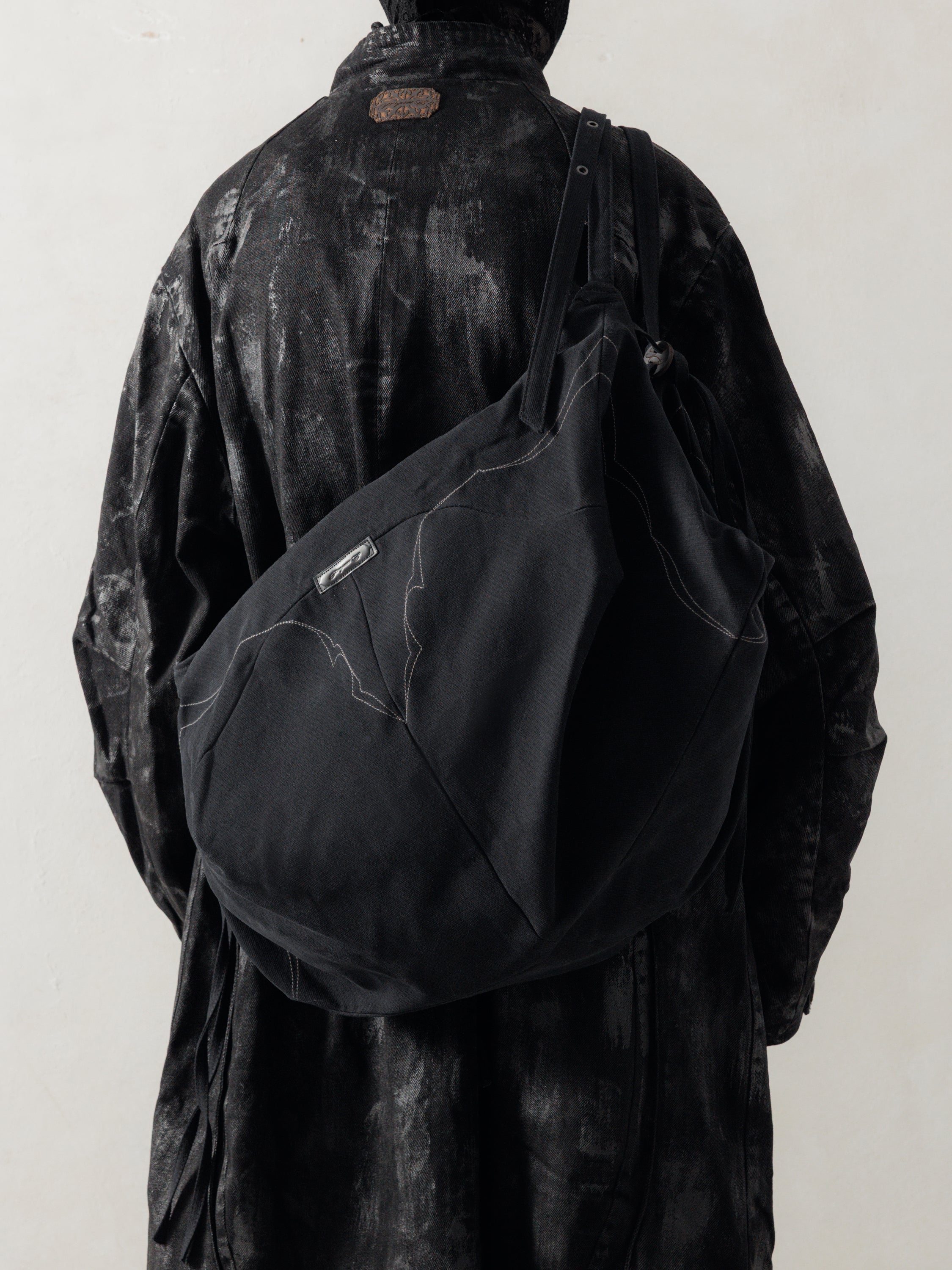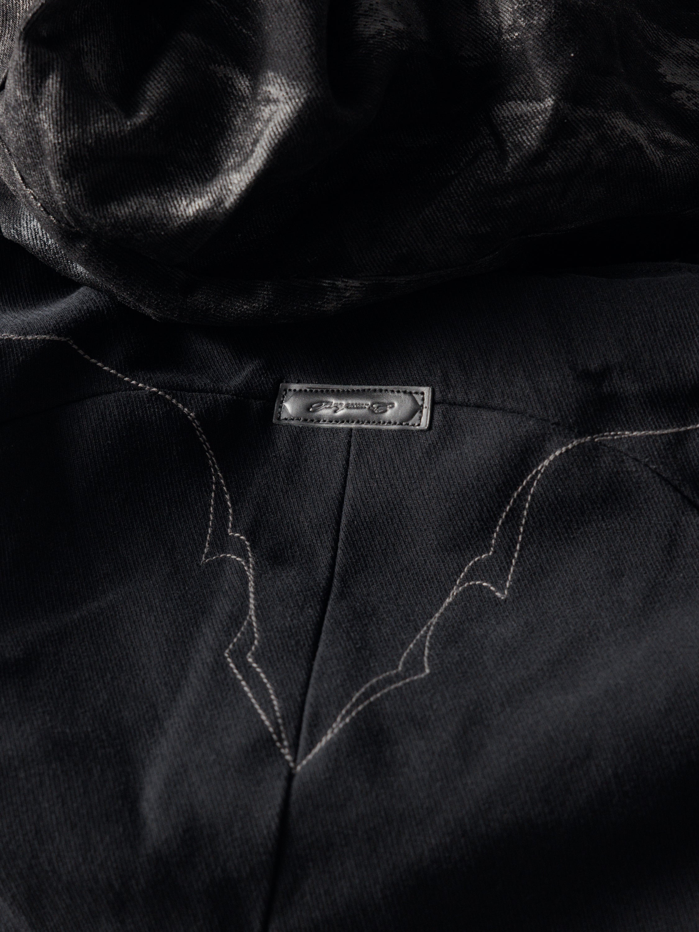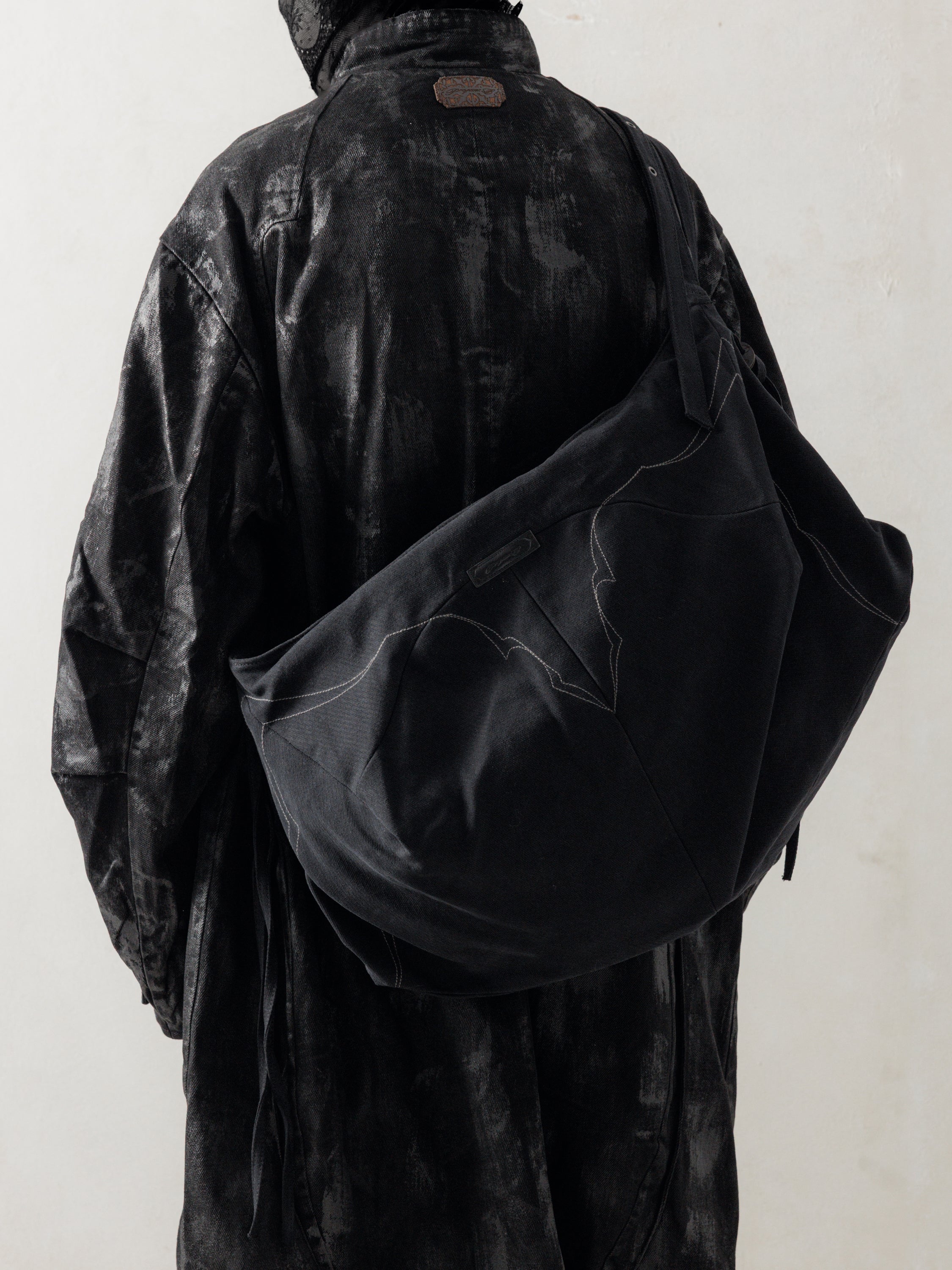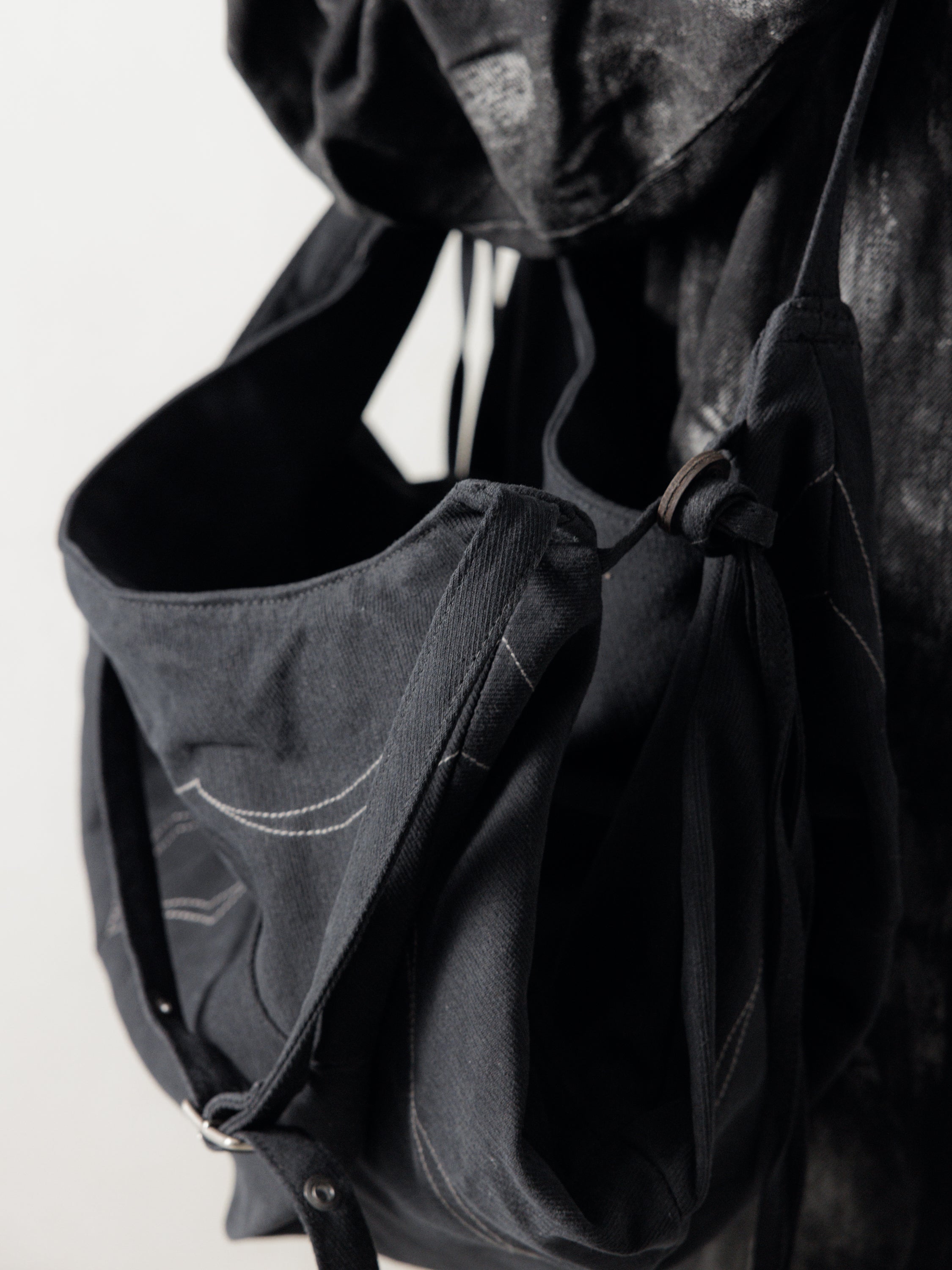 The material is relatively stiff, and the fabric has been washed, giving the surface an irregular texture.