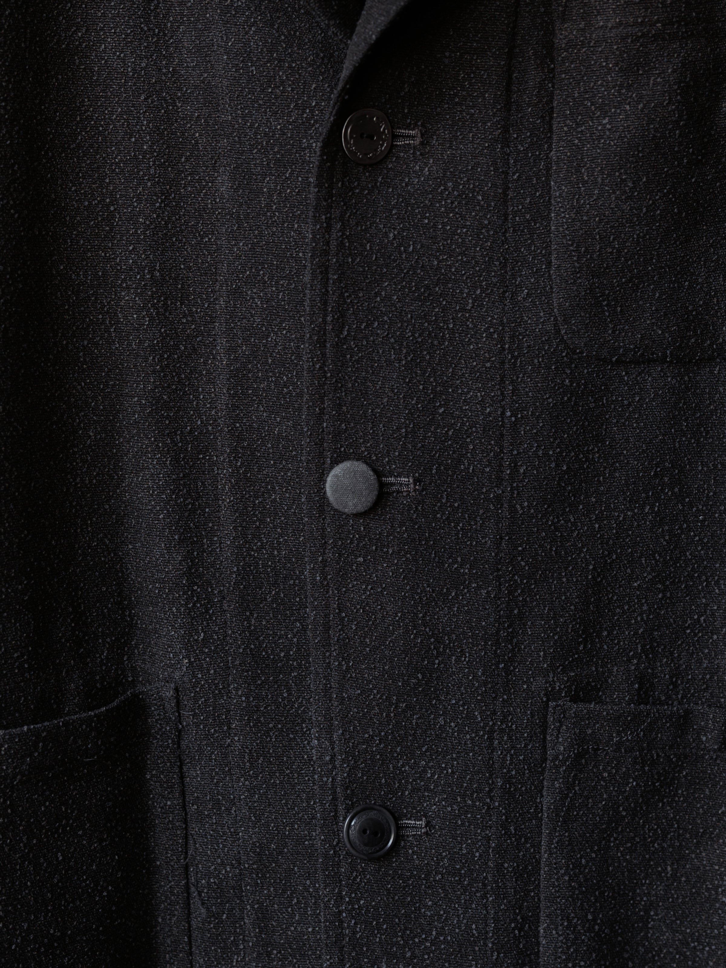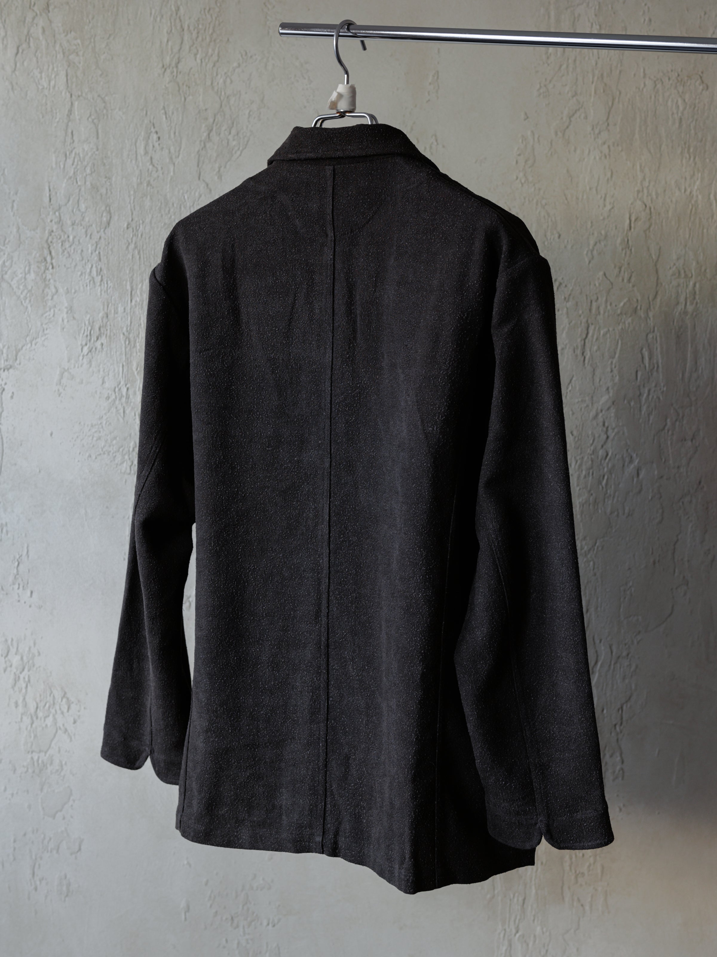 Inspired by a 1940s American work jacket from the archive, crafted from 100% Tussah silk and naturally dyed with plant-based colors. The fabric’s inherent texture adds an engaging, tactile quality.